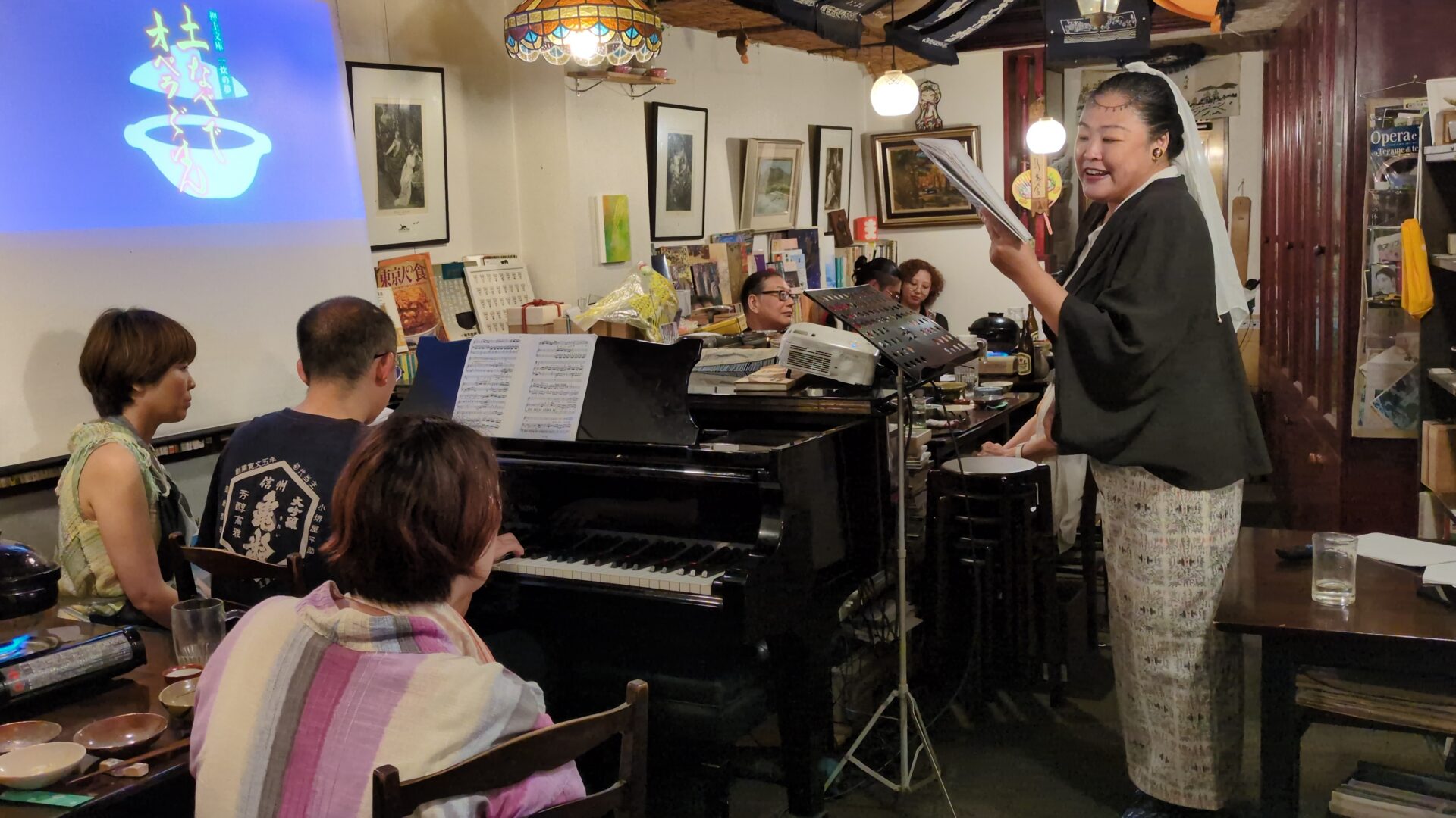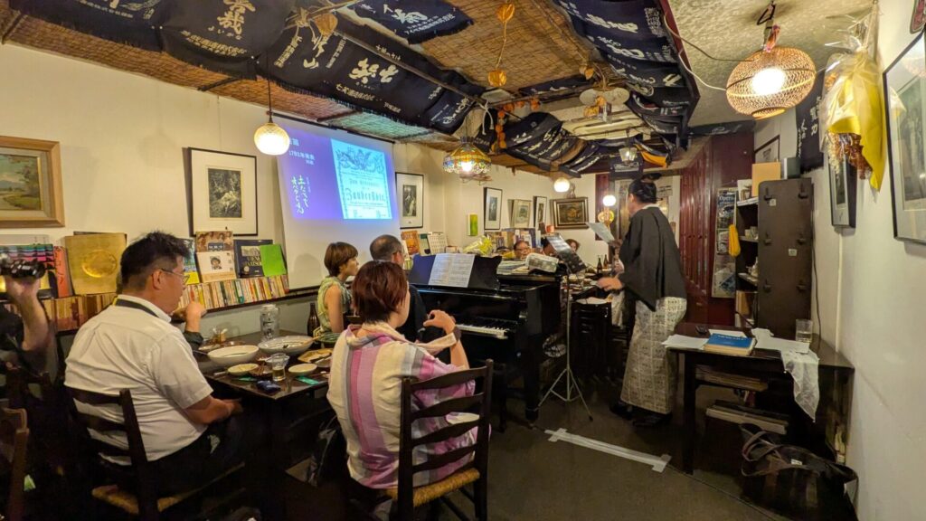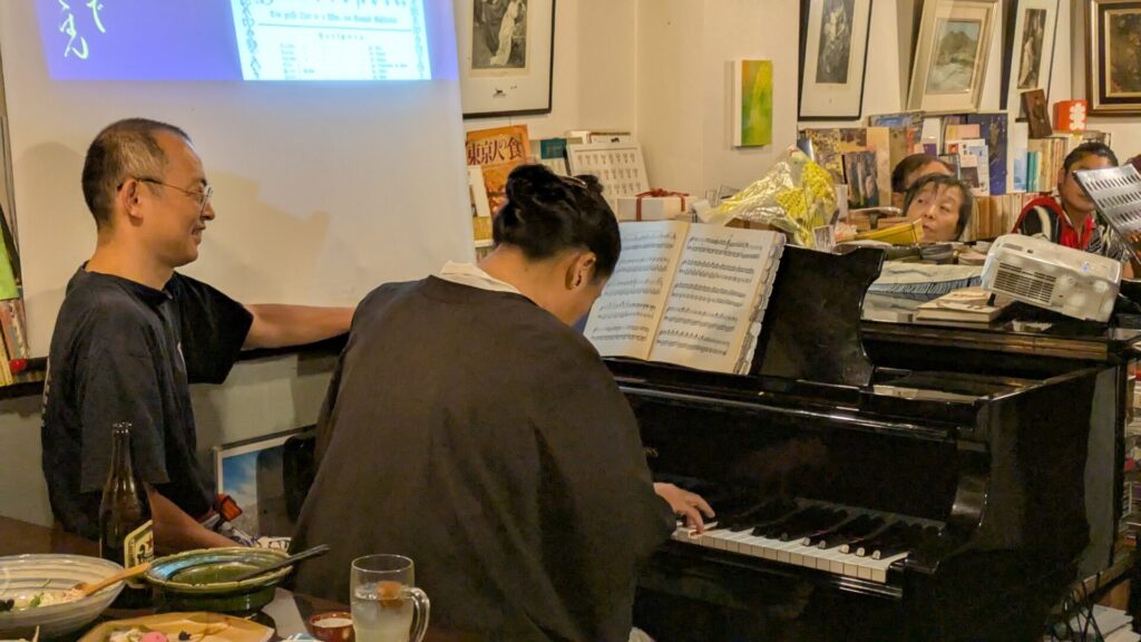 最後は毎回恒例、みんなで滝廉太郎の「花」を歌ってイベント終了。美味しい夜が更けていきます。